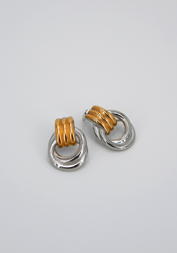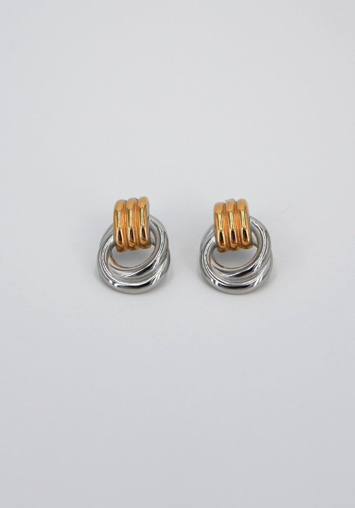 Das skulpturale Design aus ineinander verschlungenen Ringen symbolisiert Harmonie und Dualität – ein moderner Ausdruck von Stilbewusstsein und Selbstvertrauen. Durch die Kombination aus 18K PVD-Vergoldung und poliertem Edelstahl entsteht ein edler Kontrast, der jedem Look Tiefe verleiht.
