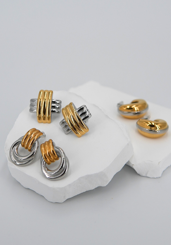 Zeitlos, kraftvoll, ausgeglichen – die Équilibre Ohrringe verkörpern die perfekte Balance zwischen Gold und Silber, zwischen Stärke und Raffinesse.